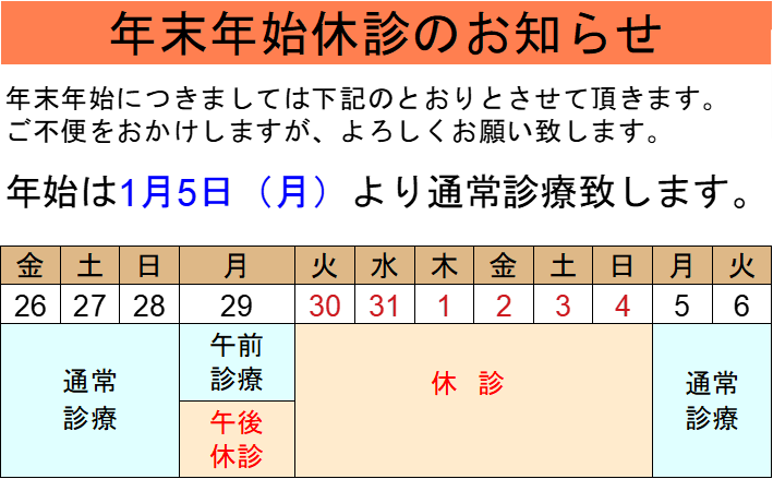 年末年始休診のお知らせ